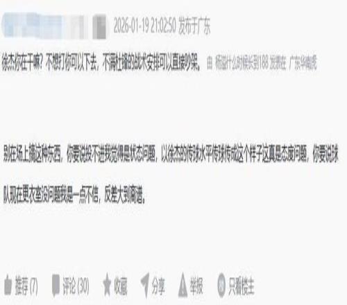 不满徐杰表现的球迷则是对徐杰提出了批评,甚至还有球迷直接嘲讽徐杰:段睿琪撞一下,他就东倒西歪;还有球迷则认为徐杰是最近和女朋友走的太近了,心思完全没有放在球场上。